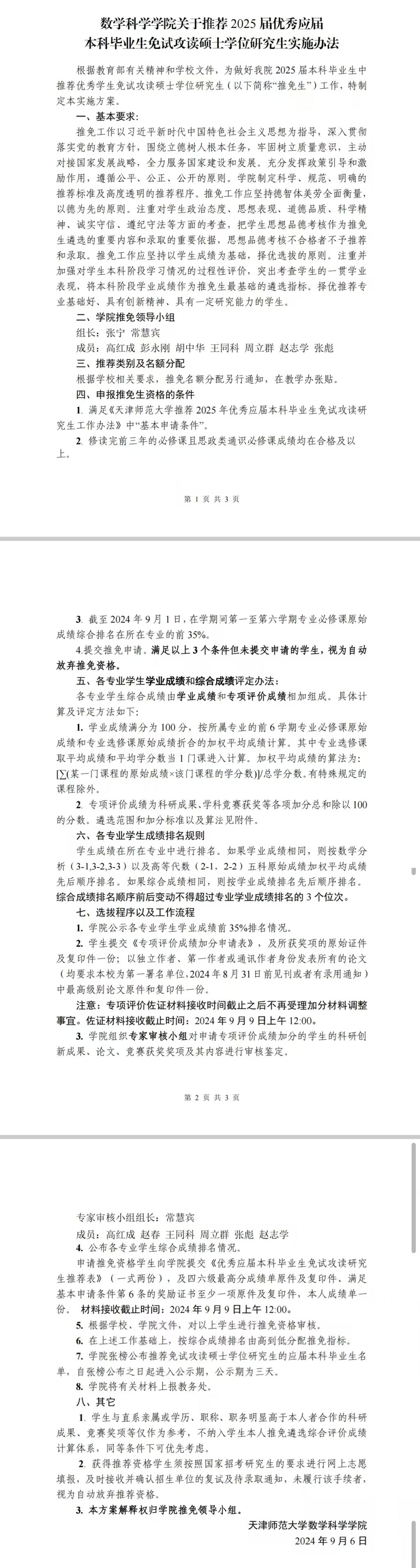 数学学院2025届优秀本科毕业生免试攻读硕士学位研究生工作实施办法