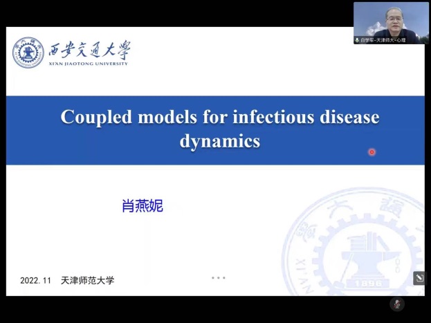 2022年11月15日上午9时,德赢ac米兰官方合作邀请西安交通大学肖燕妮教授为交叉学科论坛带来题为《传染病动力学的耦合模型》的线上学术报告。德赢官网白学军副校长和常慧宾副院长主持报告,德赢官网赵春院长等多名教师、研究生及本科生共同聆听报告,同时报告也吸引了多名外校专家以及学生参与。