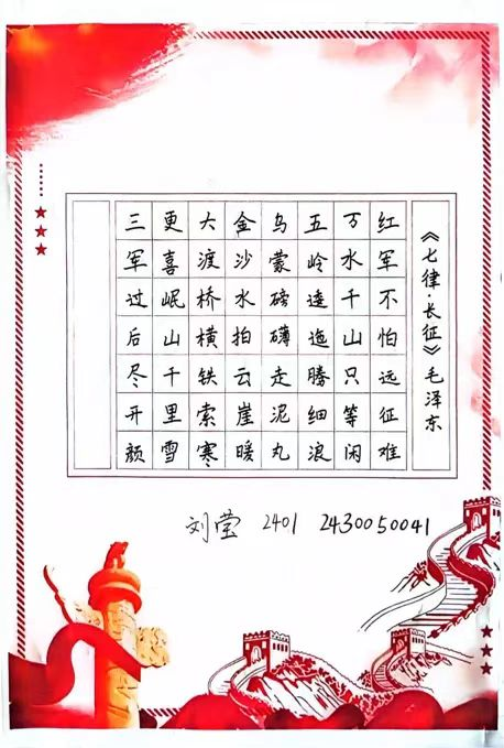 为庆祝中华人民共和国成立75周年,德赢ac米兰官方合作开展主题为“学为师范,写意风采”的三字一画展示活动。“三字一画”,即钢笔字、粉笔字、毛笔字和简笔画,是教育领域的重要技能,也是艺术表达的独特方式。在这个举国欢庆的节日里,它们成为同学们向祖国献礼的独特方式,共绘祖国壮丽画卷。