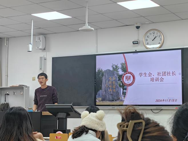 郭老师围绕“学生干部身份的转变、学生骨干的主要责任、后备力量的培养及对部门工作的建议”四个方面展开此次培训。他强调,学生干部需从“参与者”转变为“组织者”,以更高的责任感和全局视角对待工作。对于学院活动的开展,既要做好自身部门的工作,也要关注其他部门的动态,积极组织和协调各部门的分工合作,切实提升整体工作的效率与质量。同时,郭老师建议学生干部通过实践活动和小型项目来观察和锻炼潜在骨干的能力,定期开展部门例会,关心部员们是否平衡好学习与工作,增加与部员们的沟通交流,以促进学生会及社团的凝聚力。
