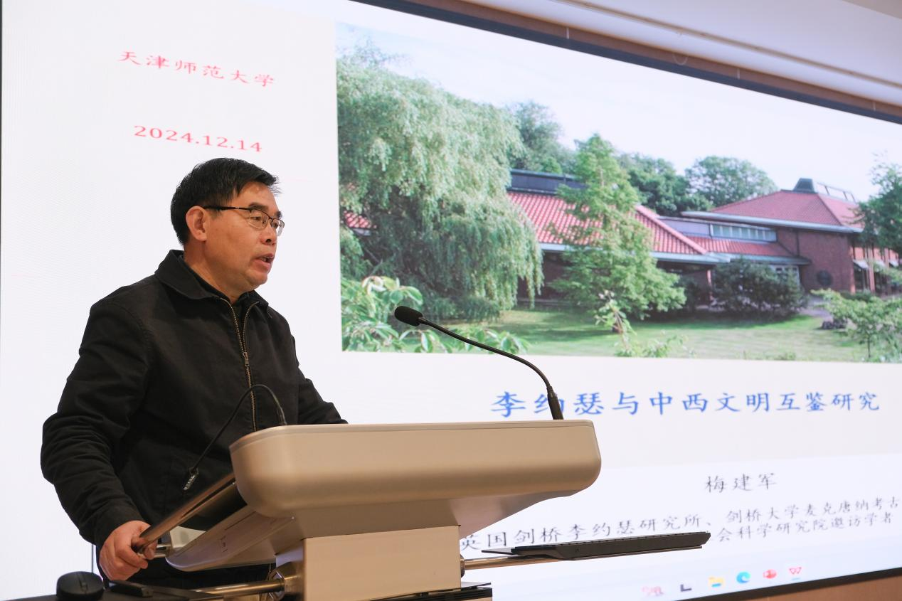 12月14日上午,德赢官网“求是讲坛”第100场报告在京津冀协同创新中心B座小报告厅举行。剑桥李约瑟研究所所长、剑桥大学麦克唐纳考古研究所研究员、北京大学人文与社会科学研究院邀访学者梅建军研究员作题为《李约瑟与中西文明互鉴研究》的学术报告。校党委副书记陈玳玮主持报告,德赢官网科学技术史与文化遗产研究院、德赢ac米兰官方合作、欧洲文明研究院、古籍保护研究院、历史文化学院、国际教育交流学院、教育学部、心理学部、马克思主义学院等单位和内蒙古师范大学师生代表220余人参加。