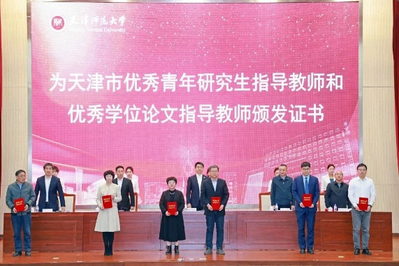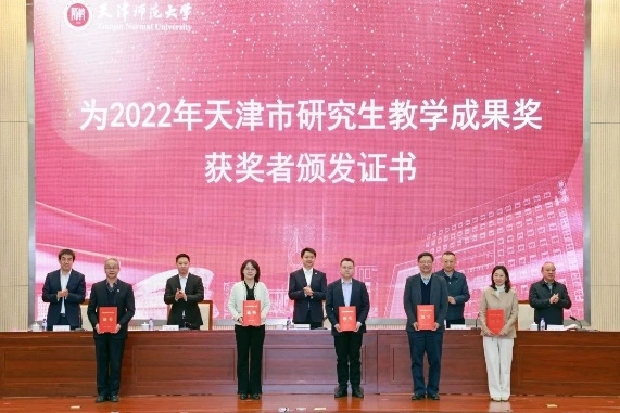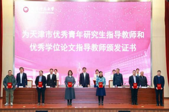 学校表彰在学科建设和研究生教育工作中取得重要成果的单位和个人。与会领导为2020、2024年新获批的博士学位授权点和“天津市顶尖学科培育计划”建设学科授牌,为2022年国家级、市级研究生教学成果奖获奖者、天津市优秀青年研究生指导教师、天津市优秀学位论文指导教师颁发证书。相关学科带头人递交《学科建设任务书》《学位点建设任务书》。研究生培养单位代表、研究生导师代表分别作典型发言。