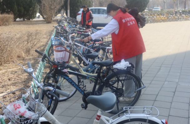 2月26日下午,志愿者们早早集合完毕,以饱满的精神状态投入志愿服务活动。大家分工协作,一组志愿者手持清洁工具对网格区域展开全面清扫,另一组负责规整道路两侧的自行车停放秩序,让网格区整洁有序.