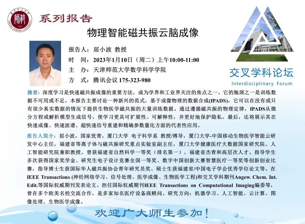 【预告】学术报告(2023-1)1月10日报告--物理智能磁共振脑成像