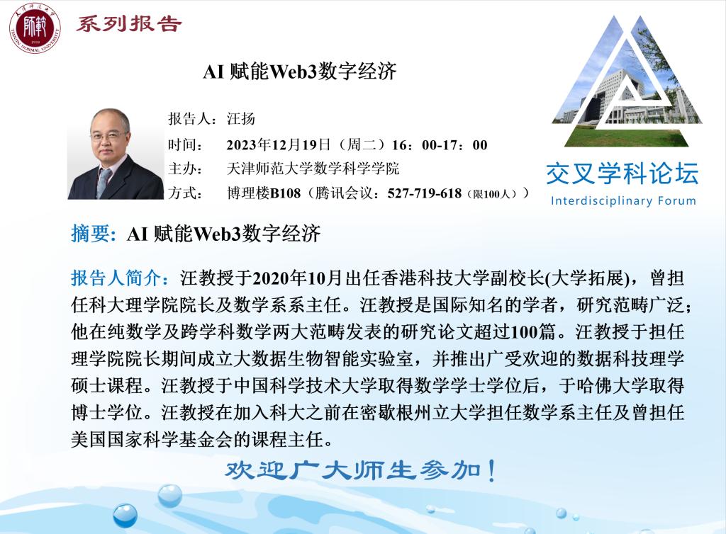 【预告】学术报告(2023-44)12月19日—AI赋能Web3数字经济