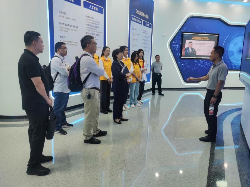 师生们在胡军宝的带领下,参观了网络空间测绘中心、国家大数据安全靶场、智能网联汽车安全研究中心等展厅,深入了解360集团通过持续的技术研发和创新,不断推出具有领先水平的网络安全产品和解决方案,为保障国家网络安全做出的贡献。