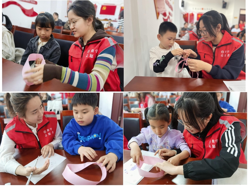 “青马”志愿者们为社区居民和外来务工子女带来了非常丰富有趣的活动。通过“趣味算数”和“数学小讲堂”,志愿者们引导孩子们探索数学的奥秘,激发他们对数学的兴趣和好奇心。志愿者们通过引入工业中的传送带、磁带原理以及莫比乌斯带的概念,让孩子们从实际生活中找到数学的影子,通过亲身体验和互动感受数学的魅力。此外,孩子们通过参与“猜数谜”“扑克速算”“填数独”等数学闯关游戏,在游戏中学习,锻炼了逻辑思维,提高了解决问题的能力,让数学变得更加有趣和富有挑战性。